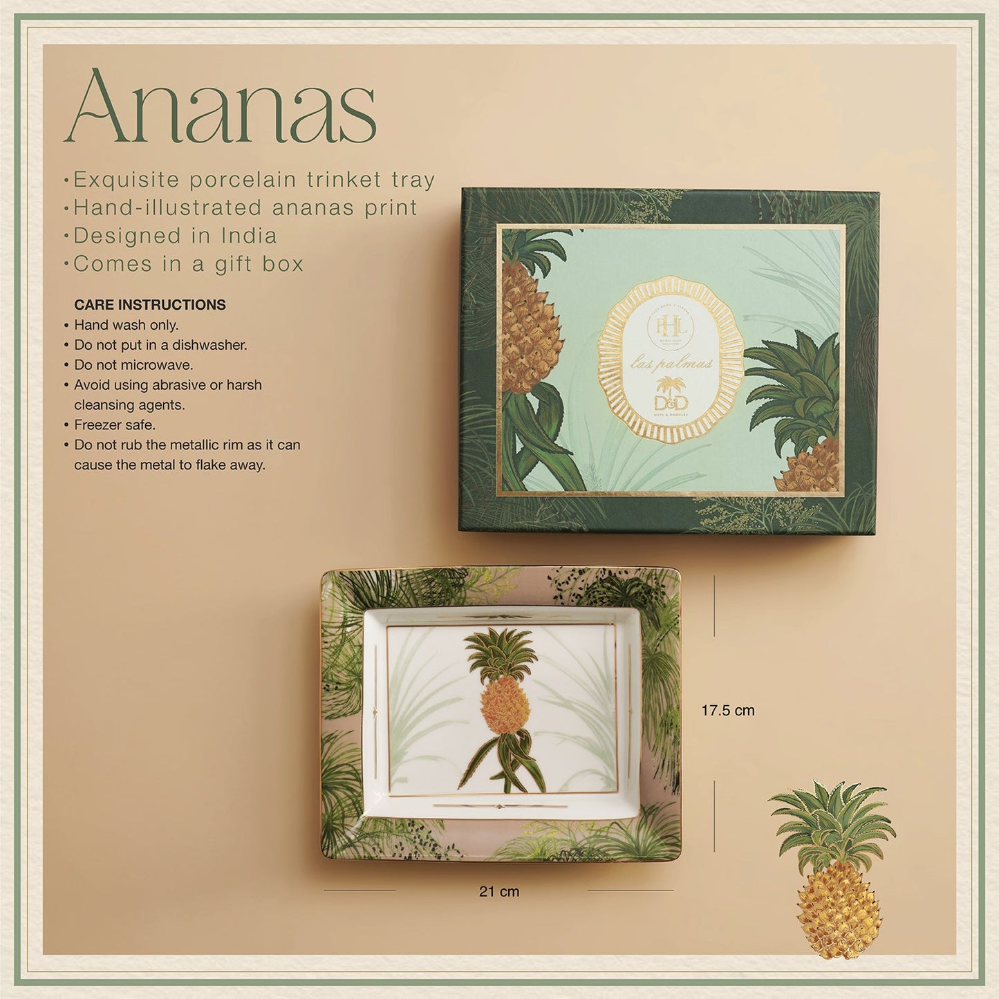 Ananas Print Porcelain Valet Tray