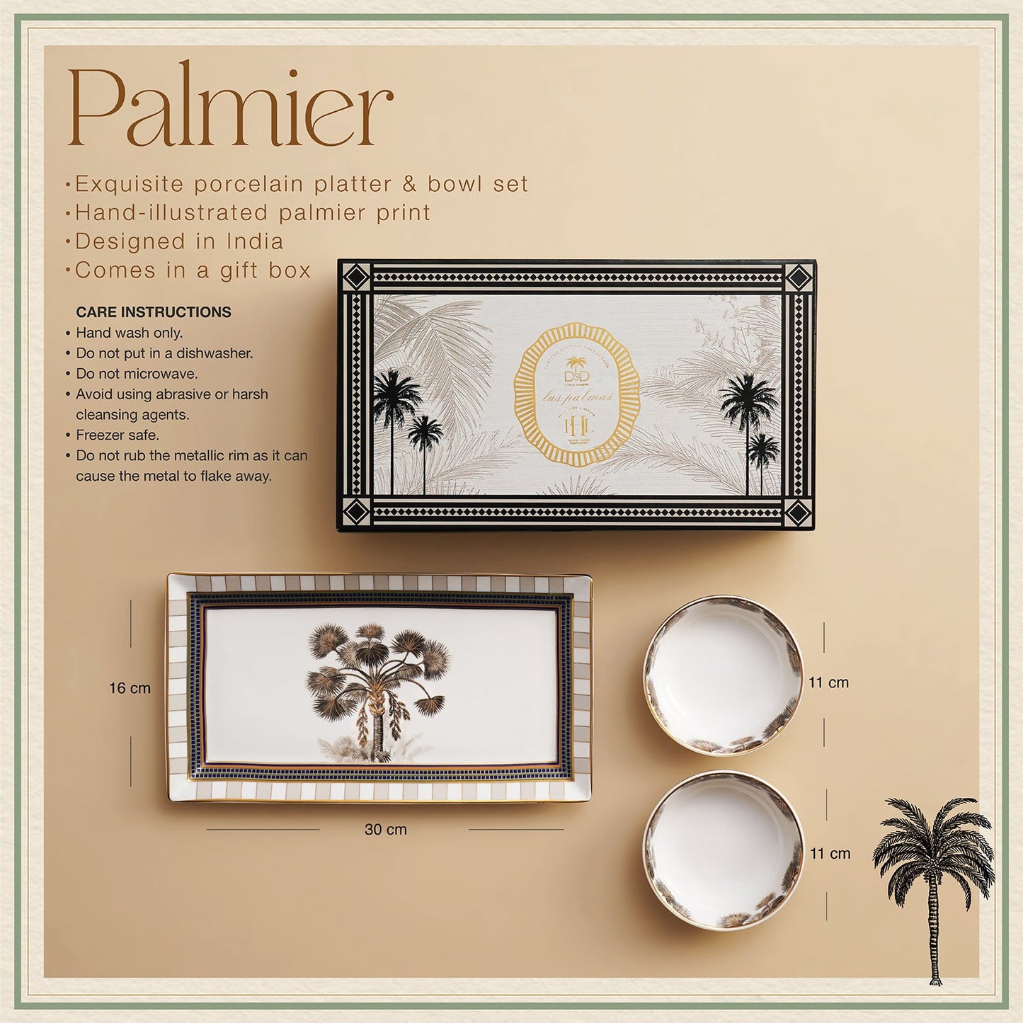 From appetizers to desserts, this platter and bowl set does it all with flair! Thoughtfully designed as a part of our limited edition, Las Palmas collection, this set is just what you need to entertain guests this festive season. It also makes for a spectacular gift, perfect for celebrating special occasions.