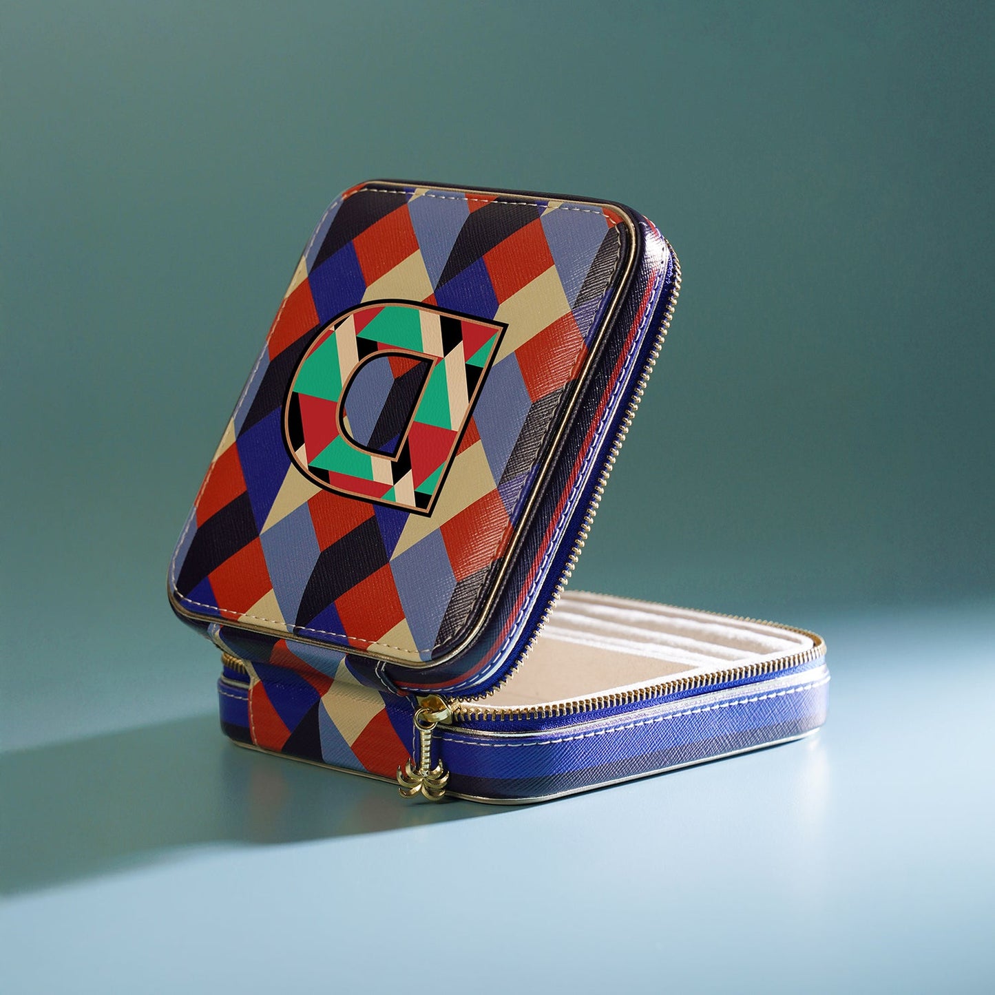 Chic and compact, this blue and peach 'D' faux leather jewellery box keeps your treasures safe and tangle-free on the go. Its bold design and secure structure make it the perfect companion for stylish, organized travel.