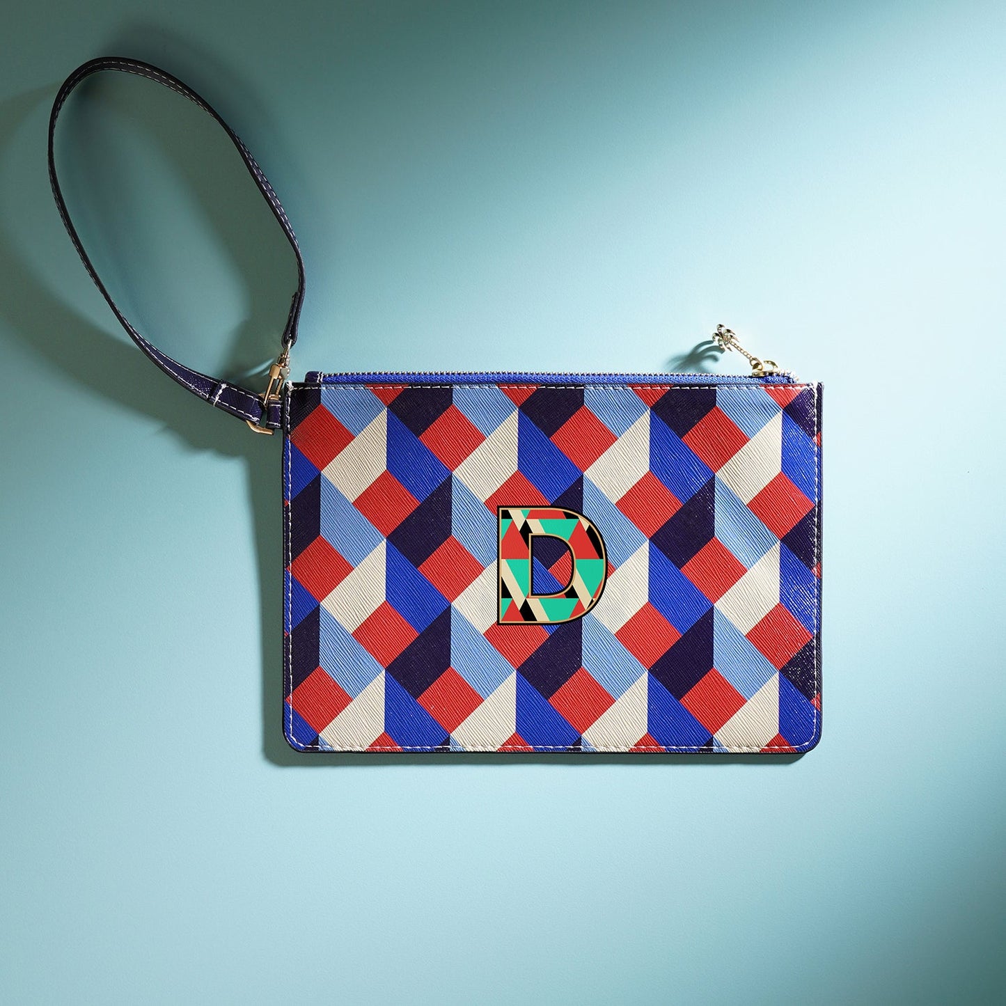 Sleek and versatile, the blue and peach 'D' flat travel pouch keeps your essentials organized with effortless style. Its bold design and compact form make it the perfect companion for every journey, near or far.