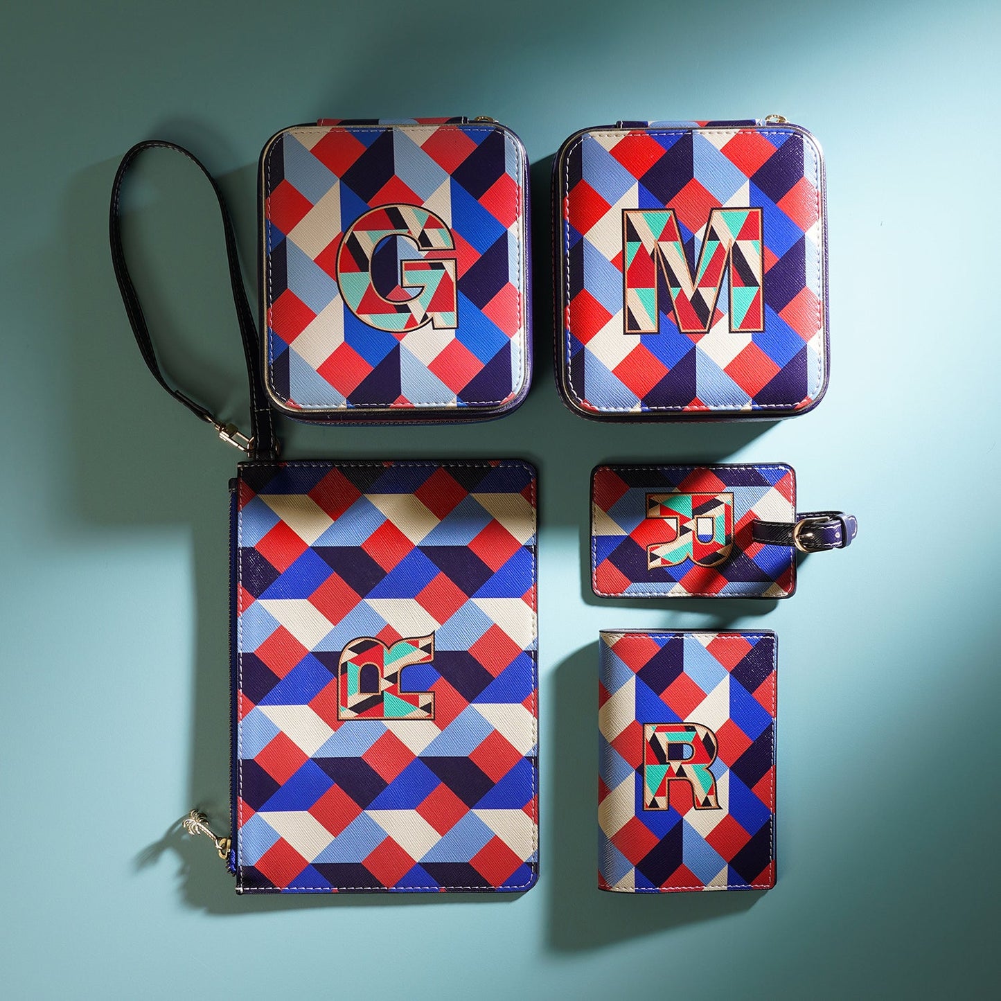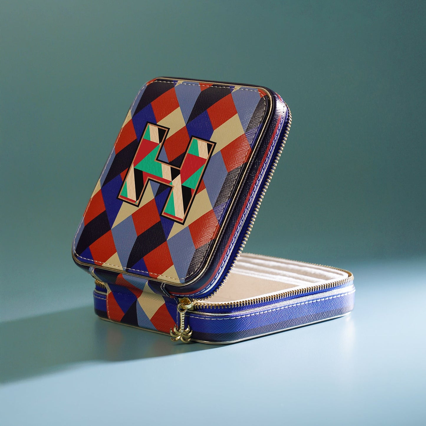 Blue & Peach H Faux Leather Jewellery Box