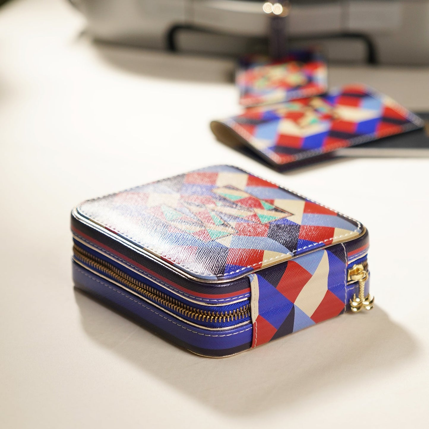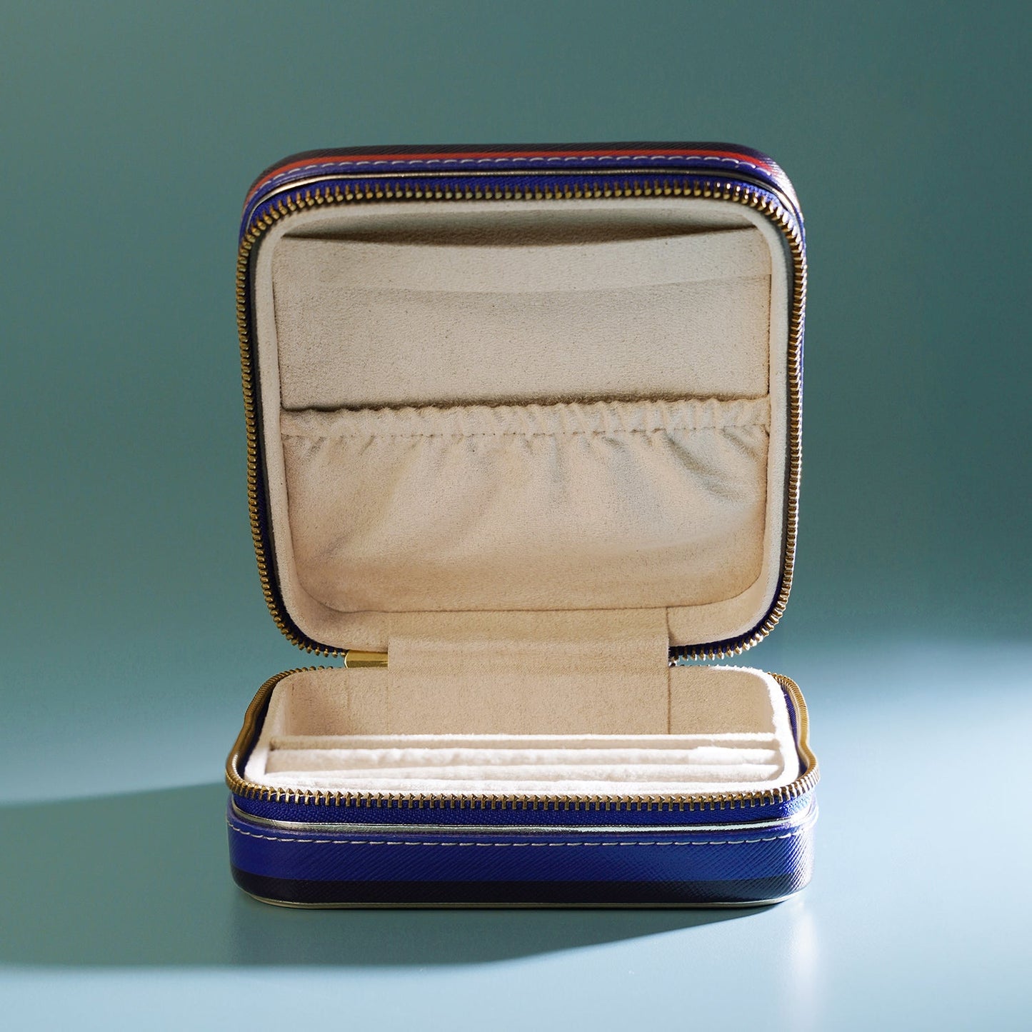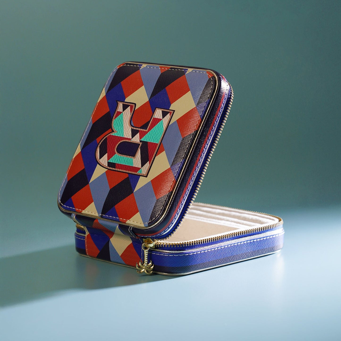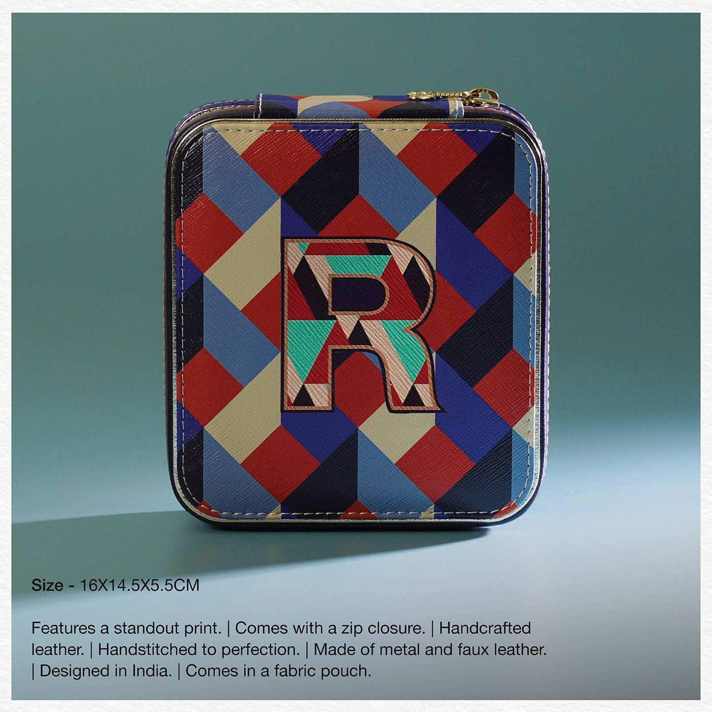 Blue & Peach R Faux Leather Jewellery Box
