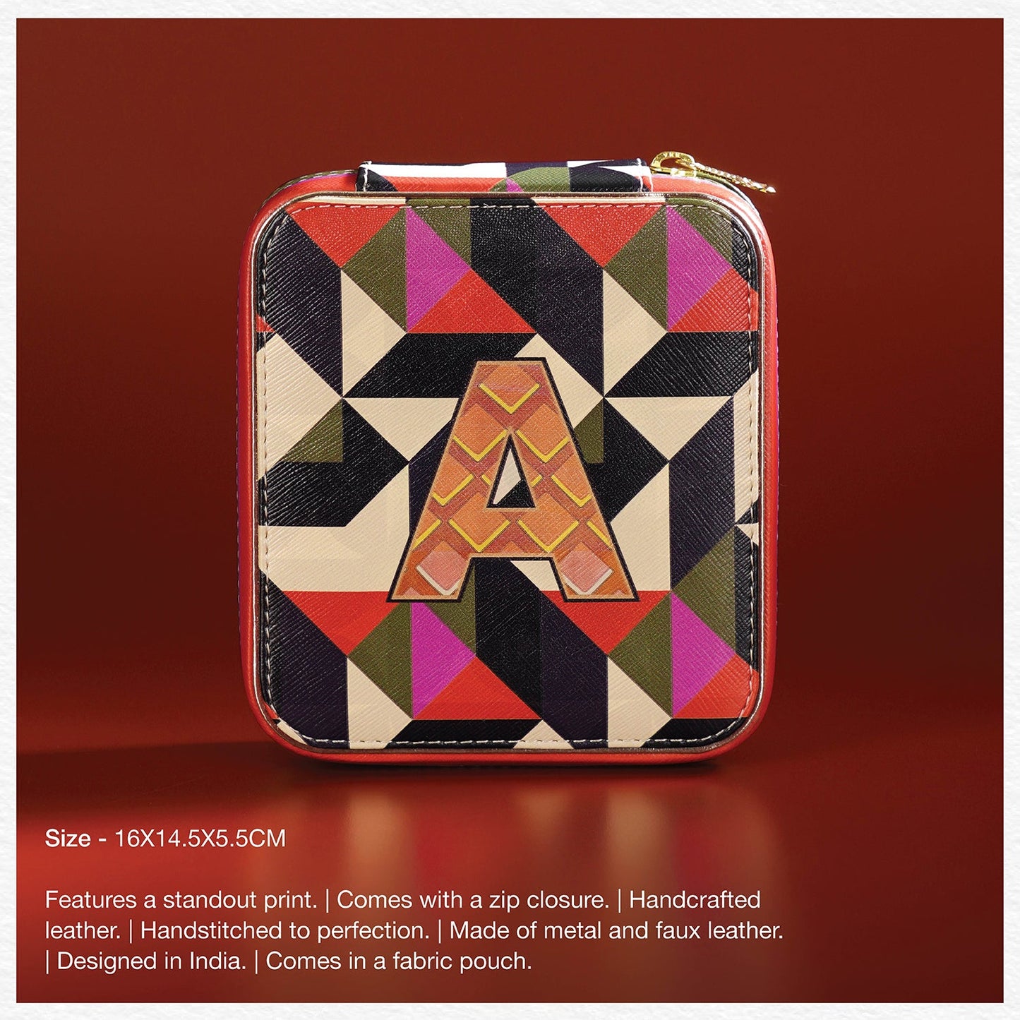 Chic and compact, this orange and pink 'L' faux leather jewellery box keeps your treasures safe and tangle-free on the go. Its bold design and secure structure make it the perfect companion for stylish, organized travel.