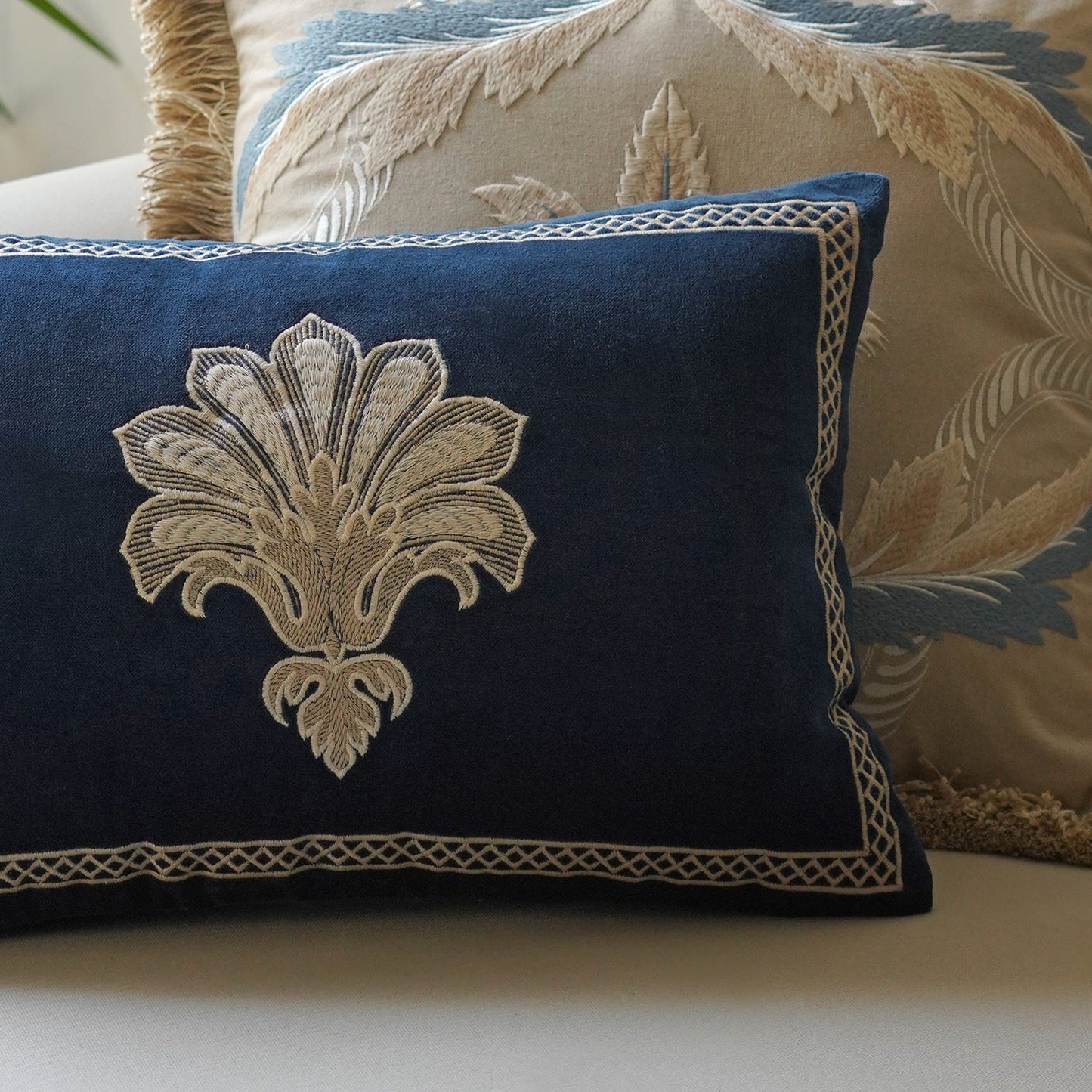 Navy Blue Embroidered Rectangle Cushion Cover