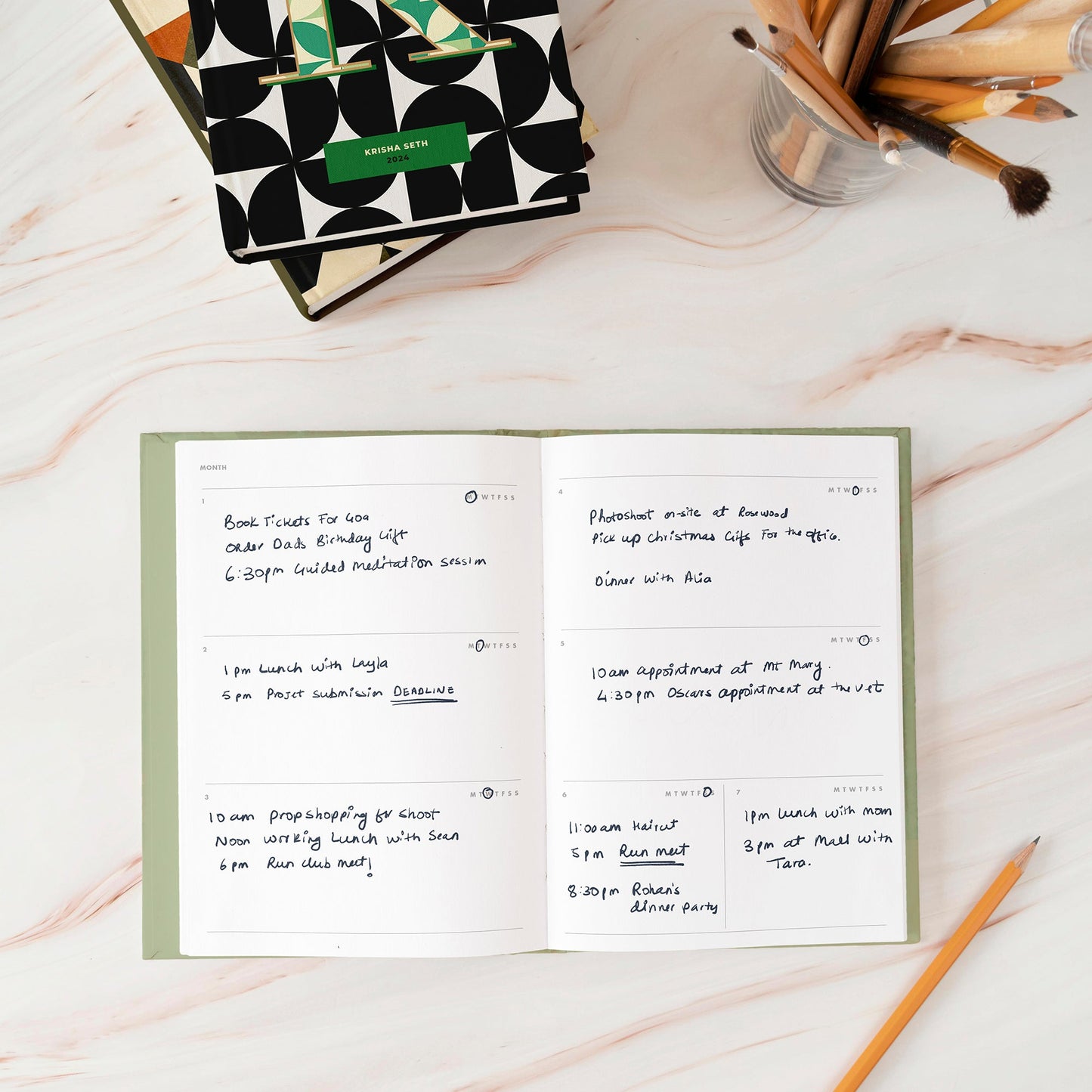 Our Roam undated hardbound planner make getting organised simple. Start using it any month keep track of all your plans. Inside, you’ll find monthly, views, a place to list your monthly goals, task lists and important dates. Followed by ruled notes pages for you to journal your thoughts and ideas.