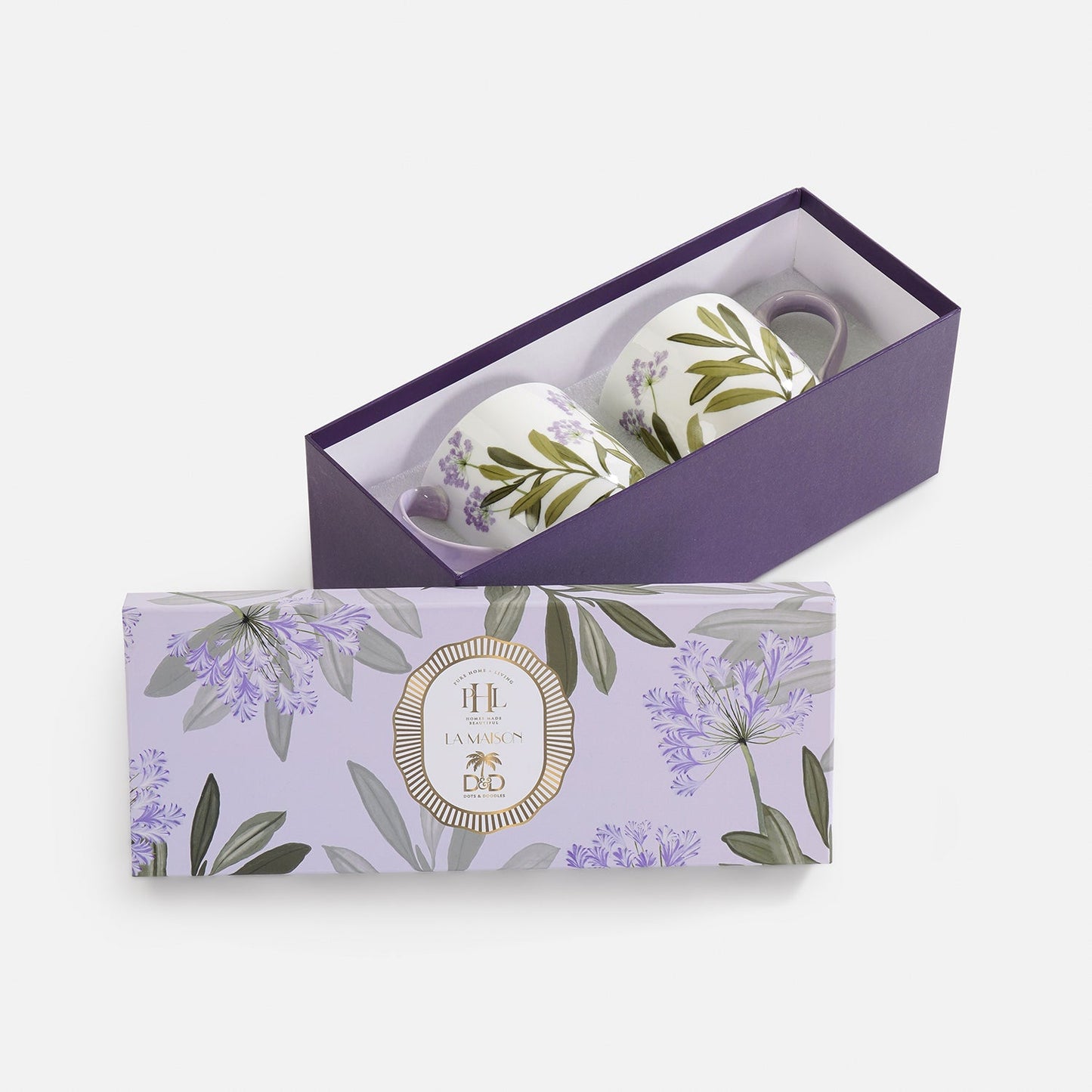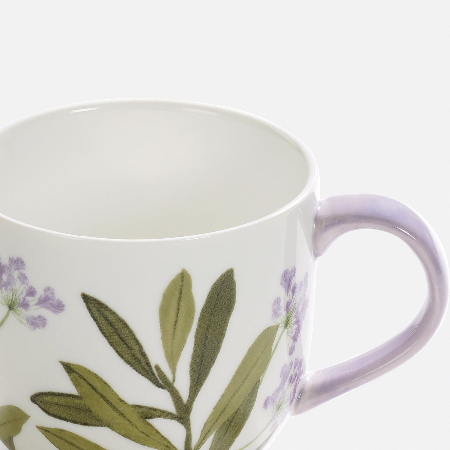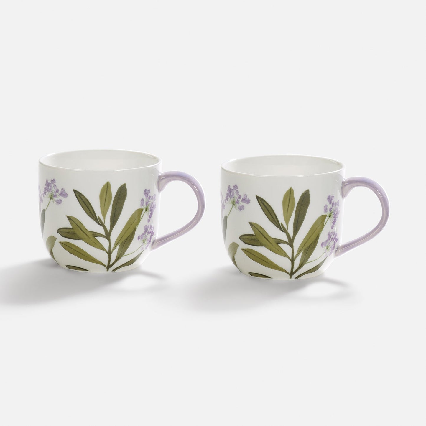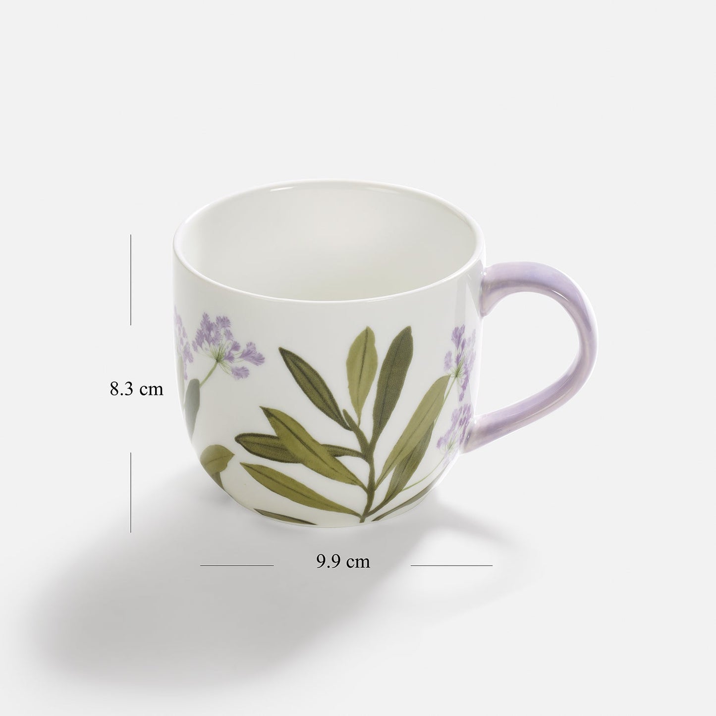 Delight in your tea rituals with these ceramic mugs, featuring painted lavender sprigs and leafy greens. The soft lilac handles add a charming touch, blending comfort with cottagecore elegance.